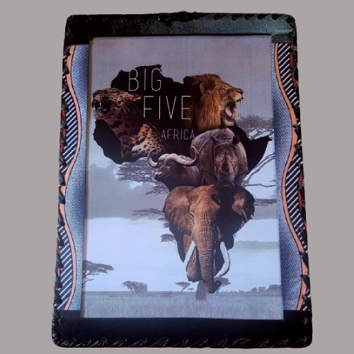 The Big Five Wall Decor Frame showcases African themed artworks with decorative, colorful patterns to brighten the room.